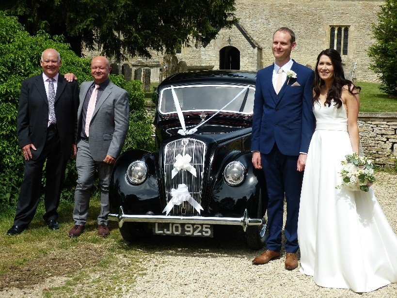 Just a week after completing restoration the Morris was used for the original owners Grandson’s Wedding (from Left to Right Roger Hampshire, Martin Hampshire, Tom and Faye Souster)